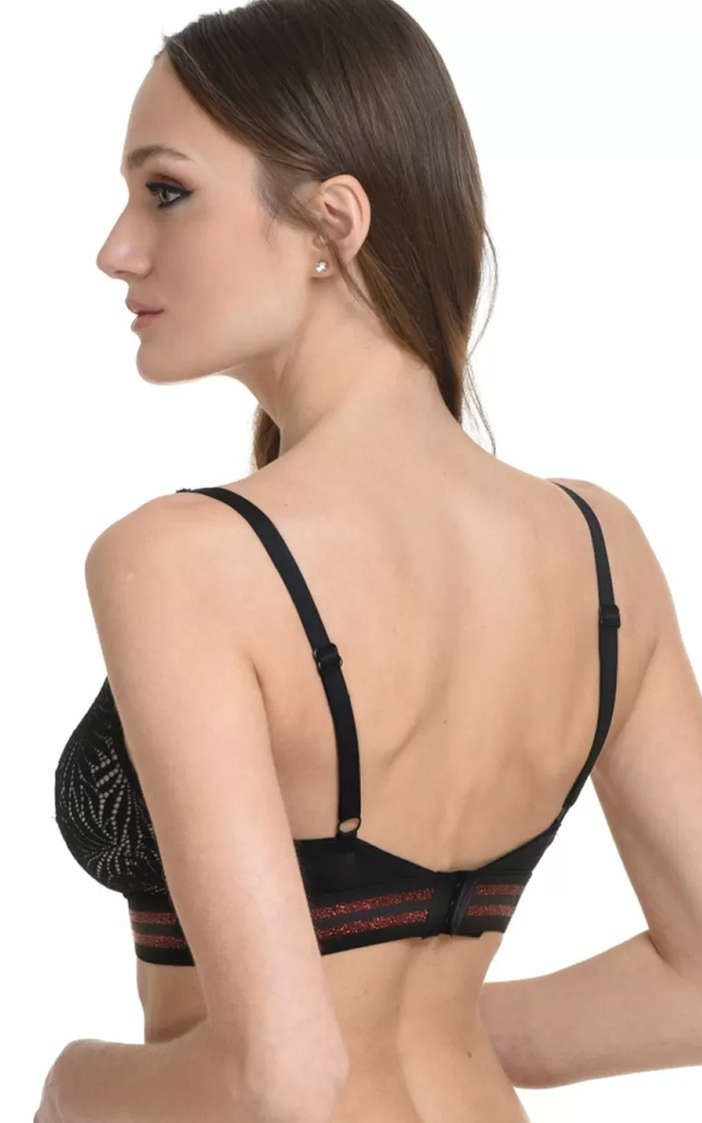 - Bralette χωρίς μπανέλα με ελαστική δαντέλα και διαφάνεια.
