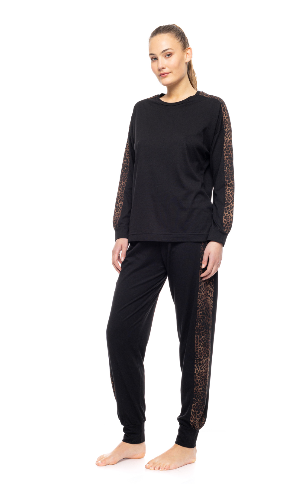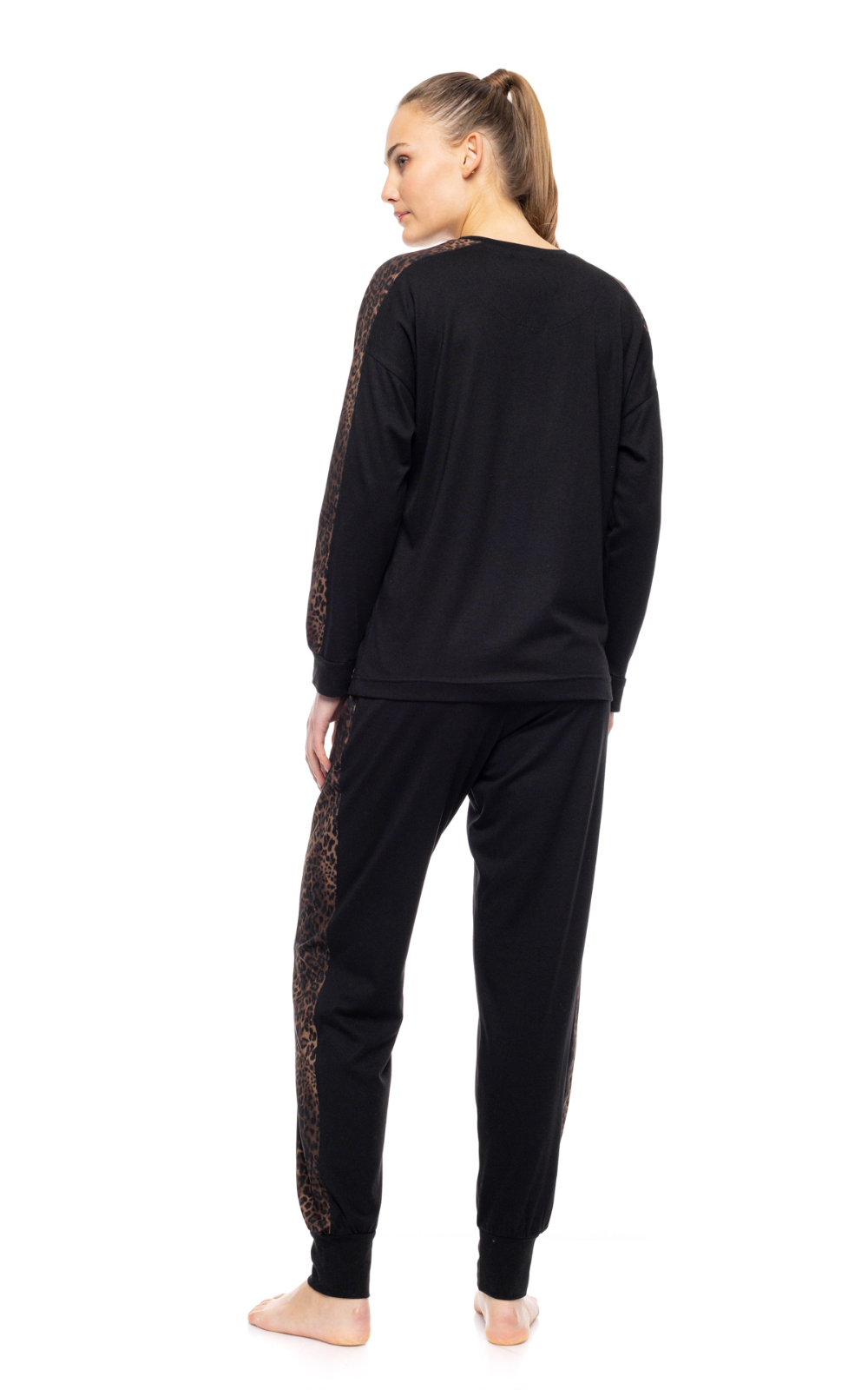 • Λεπτομέρεια με ρίγες λέοπαρ στα μανίκια και στο παντελόνι