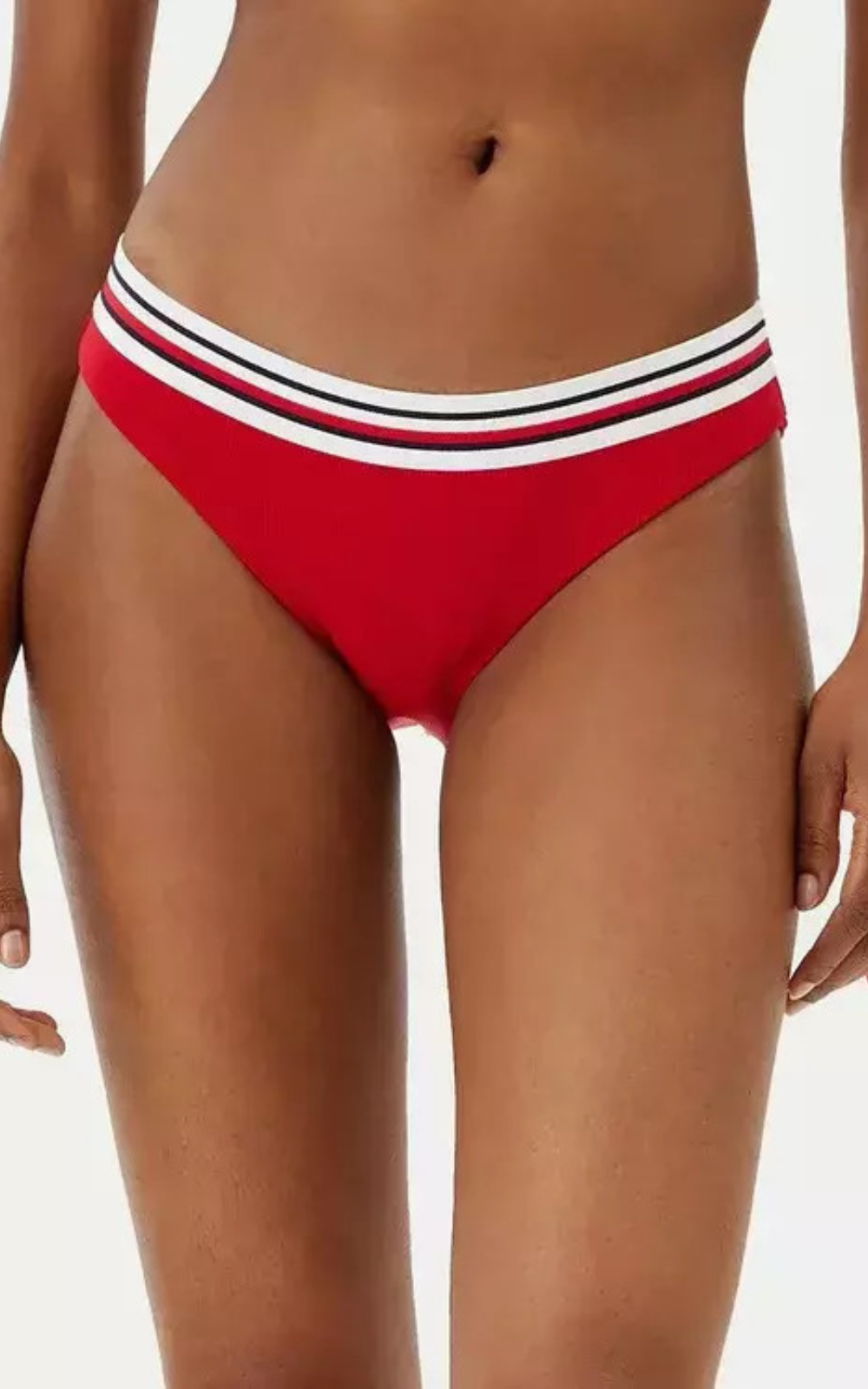 Γυναικείο μαγιό κάτω μέρος σε μπλέ και κόκκινο χρώμα.