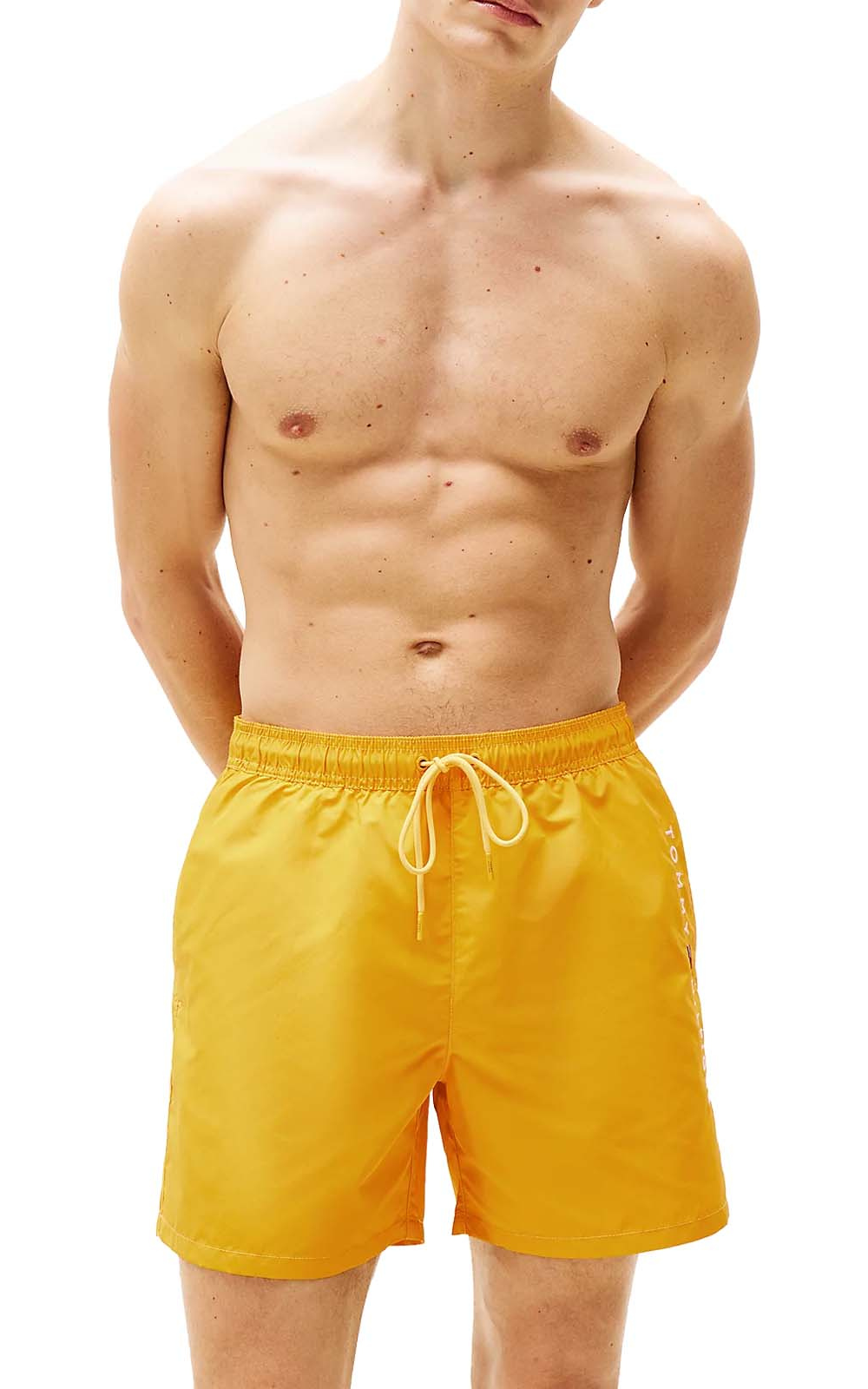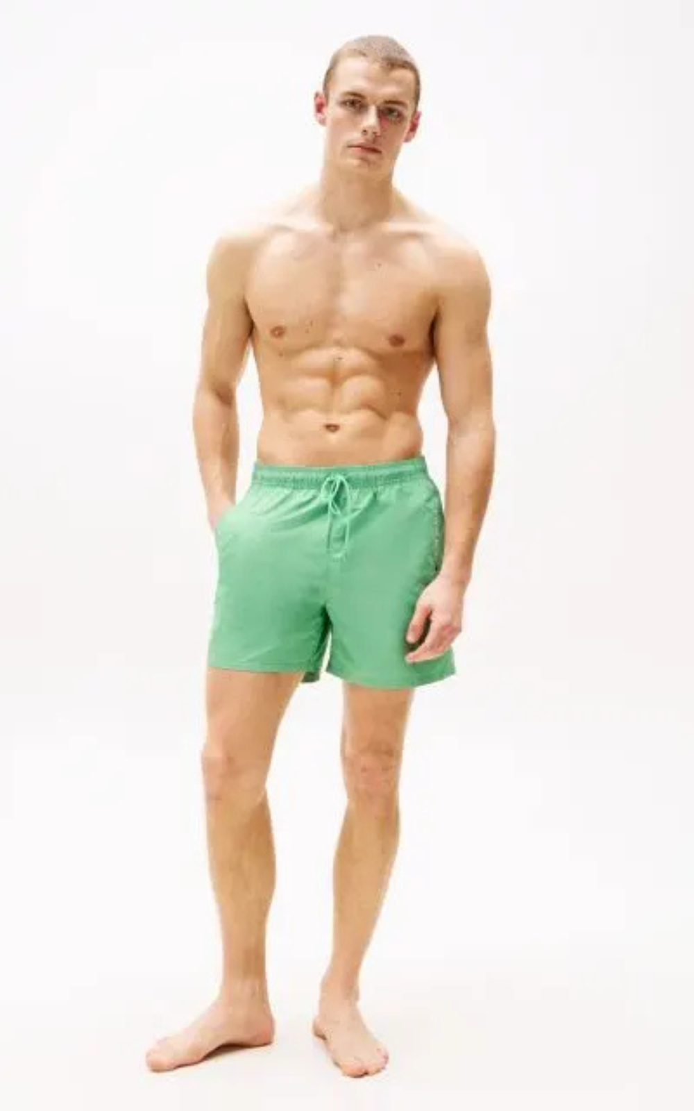 Κομψό και πρακτικό, αυτό το ανδρικό μαγιό σορτς μεσαίου μήκους διαθέτει άνετη μέση με κορδόνι και τσέπες στο πλάι και πίσω.